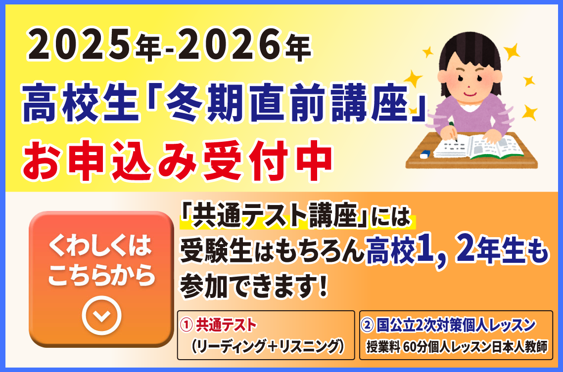 2025年11月30日 英語アカデミー 2025年冬期直前講座『共通テスト』の受付中です NEW!