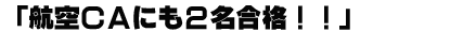 英語アカデミーには「エアラインクラブ」があります。ここの会員になると英語アカデミー講師(元JAL国際線CA)からさまざまな情報が習得できます。もちろん受験に関しての取組み方、話し方、立居振舞まで、本当に役立つレッスンも特別価格で受講できます。会員から昨年8月と今年1月の半年間に国内系航空会社と外資系航空会社のCAに合格。CA(スチュワーデス)の場合は一回での合格はなかなか難しいので何度も挑戦しているようです。ぜひ、この機会にエアラインクラブに入会してみませんか。