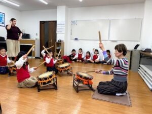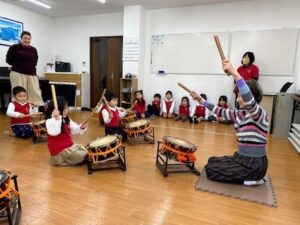 和太鼓のお勉強 (2月8日) 2024年 2024.02.192025.11.21 昨年に引き続き、天野さなえ先生に来ていただき、「和太鼓」について教わりました。太鼓の真ん中の白い部分が鹿の皮だと聞いて、みんな少し驚いた様子。生きた鹿の皮をそのまま使うのかと思ったような園児もいました。 この和太鼓は紐を通して締めていく「締め太鼓」で、能や歌舞伎などで使われるそうです。独特の掛け声やバチの叩き方などは大変興味深いものがあります。 慣れるにつれ、みんな少しずつではありますが上手になりましたね。これを機会に日本伝統の文化などに触れる機会が増えることを願っています。 \ 動画はこちらから /
