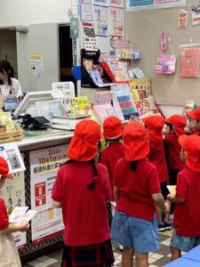 お仕事見学を兼ねて、「敬老の日」のために作ったプレゼントをみんなで近くの一番町郵便局へ投函しに行きました。