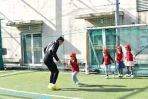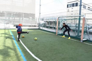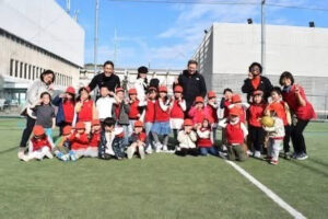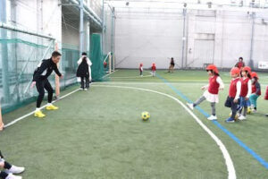 まずはウォーミングアップにかけっこや鬼ごっこをしました。全力で一緒に走り回る子ども達。その後、森脇さんが直々にサッカーを教えて下さり、子ども達は一人一人シュートを決めたり、チーム戦で対戦したりと、思い切りサッカーを楽しみました。