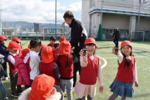 最後にプレゼントとして、カッコいいサイン入りのカードを子どもひとりひとりにいただきました。みんな笑顔いっぱい、嬉しそうにカードを受け取っていました。