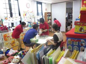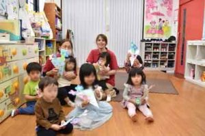 その後グループに分かれてハロウィンアクティビティ《Haunted House(おばけやしき)、ハロウィンゲーム、プレイドー(ねんど)でおばけづくり 》を楽しみました。