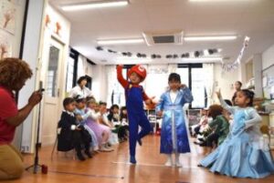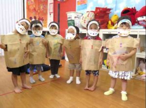 コロナ対策として午前中と午後2回に分けてご両親を招待しました。セリフだけでなく動作やダンスに歌とありましたが、みんな劇を楽しめる余裕をもつほどになっていました。