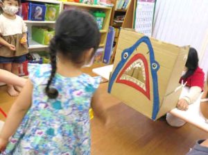 エプロンの仕掛けが開いて大きなウサギさんやカバさんの口が出てくると、びっくりした子ども達からWOW!!という声が聞こえてきました。