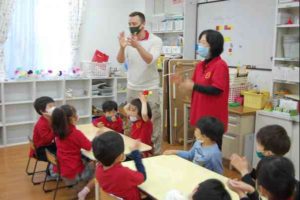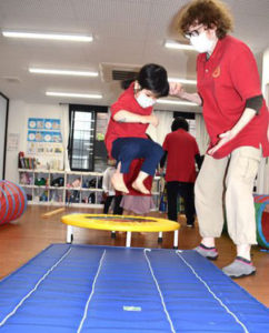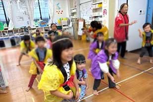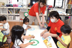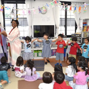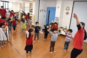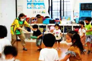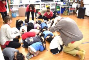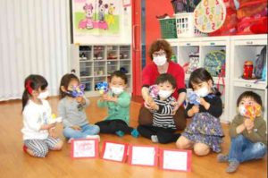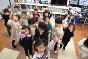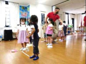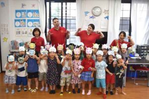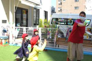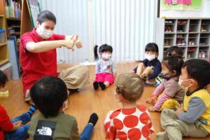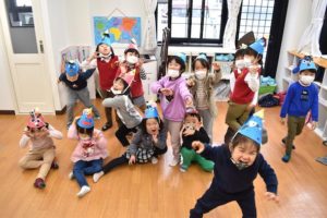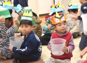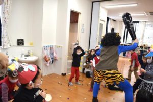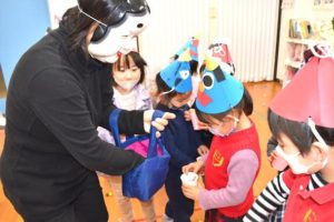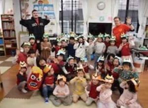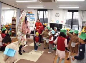 今回のテーマば“節分の鬼”。Bruno先生が現れると子どもたちは大興奮!