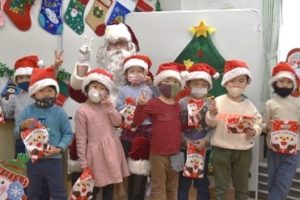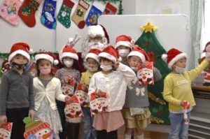 最後に、サプライズでサンタさんが登場! 子どもたちは家族の皆様と記念撮影をして、サンタさんからプレゼントをもらいました。