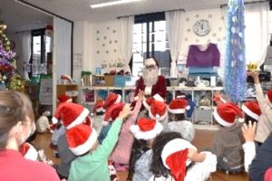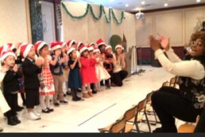 そこに小さいクラスの子ども達も加わり、全員で”Santa Claus Is Coming to Town”を振り付きで披露。
