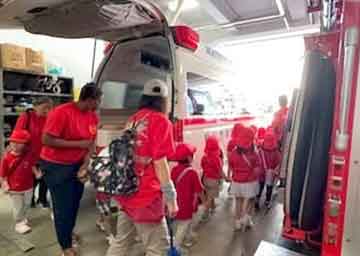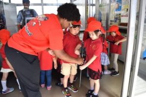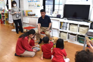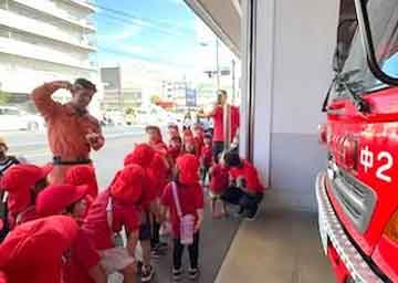 出かける前に「サークルタイム」ではIan先生と消防署とお仕事についてお話をしました。「消防署はどんなところ?」「消防士さん達のお仕事は?」など、子ども達には知りたいことがたくさんです。