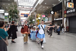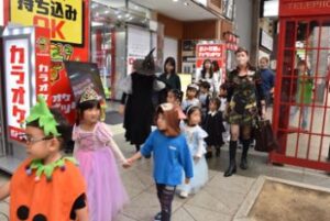 そして大街道入口では”♪Hot Potato”を元気に踊って、最後に記念撮影を。 雨にも関わらず、保護者の方々にもたくさんお越しいただき子どもたちの可愛らしい姿を見て頂くことが出来ました。とても賑やかで楽しいハロウィンウィークでした。