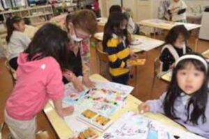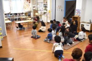 Kodomo Hon no Mori Matsuyama (February 24) “Kodomo Hon no Mori” (Children’s Book Forest) was created by the world-famous architect Tadao Ando. His dream was to build a special “story sanctuary” that treasures children’s honest eyes and rich sensitivity. This project has grown across Japan, and now there are five locations. One of them, Kodomo Hon no Mori Matsuyama, opened last July. Our school principal, Marin Burch, once listened to Mr. Ando speak in person and was deeply moved by his ideas. We have always been interested in this wonderful children’s library because it is so close to our school. Today, we were finally able to visit. In one word, it is truly amazing. The building is bright, beautiful, and designed from a child’s point of view. Since visits are by 90-minute reservation only, the children could fully enjoy reading books at their own pace. The staff members were very kind. They explained the different types of books and where to find them. Together, we explored the whole library. After a while, one child came running with shining eyes and said, “I found a secret base!” We saw that between the curved bookshelves, there was a small space where a few children could sit. It felt just like a little hideout. The building is full of glass, so it is bright and clean. The books are easy to see, and children can even lie down and read. From the window, we could also see “Bansuiso,” which we will use for our entrance ceremony. At the end, Ariel-sensei read three books to us: one English book, one bilingual English-Japanese book, and finally a Japanese book. For the last book, the children helped explain it in English. It is very close to us, so let’s walk there again soon!