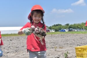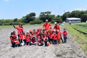 最後には、焼き上がったばかりのオリジナルのクッキーを持って工場の前で記念撮影!美味しそうな匂いで幸せいっぱいの子どもたちでした。