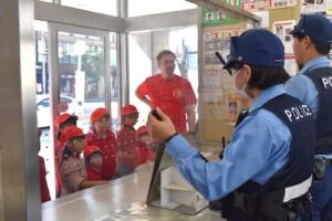 また案内してくださった”Super Rescue”のエンブレムを付けた消防士さんには、特別救助隊のお仕事や道具についても教えて頂きました。最後の質問タイムには、「消防車はなぜ赤いの?」「何人で救助に行くの?」など、子ども達からたくさんの質問が出ました。「どうして消防士さんになったの?」という質問には、「力が強くて、人の役に立てると思ったから!」とお答えいただきました。